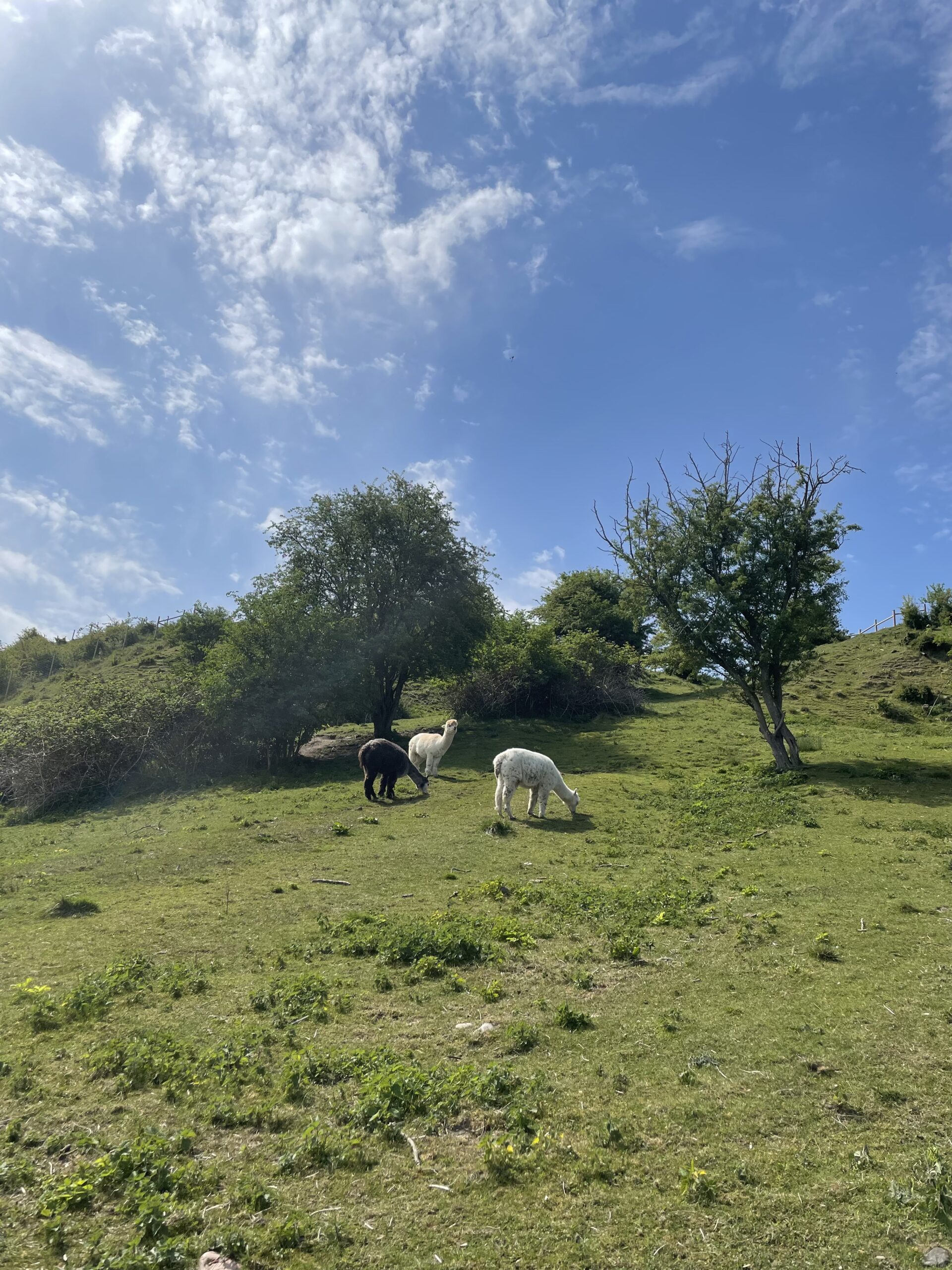 6月有陪羊駝散步的活動,雖然時間沒對上,但羊駝農場是可以自己進去的,牆上有梯子。還是有看到羊駝,不過我們也不敢真的靠近。